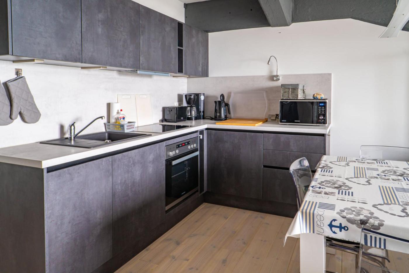 The apartment with a balcony and sea views has 2 bedrooms, a living room, a flat-screen TV, an equipped kitchen with a dishwasher and an oven, and 1 bathroom with a walk-in shower. Guests can take in the ambience of the surroundings from an outdoor dining area. This apartment is allergy-free and non-smoking.