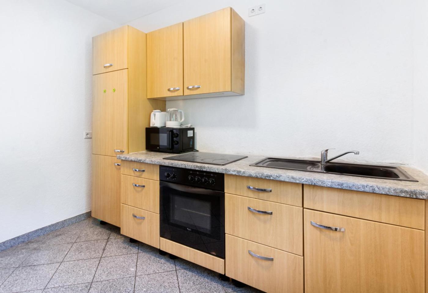 Two-Bedroom Apartment. The apartment features 2 bedrooms, 1 bathroom and a kitchen. The apartments kitchen is available for cooking and storing food. The spacious apartment offers a flat-screen TV, a washing machine, a coffee machine, heating as well as garden views. The unit offers 5 beds.