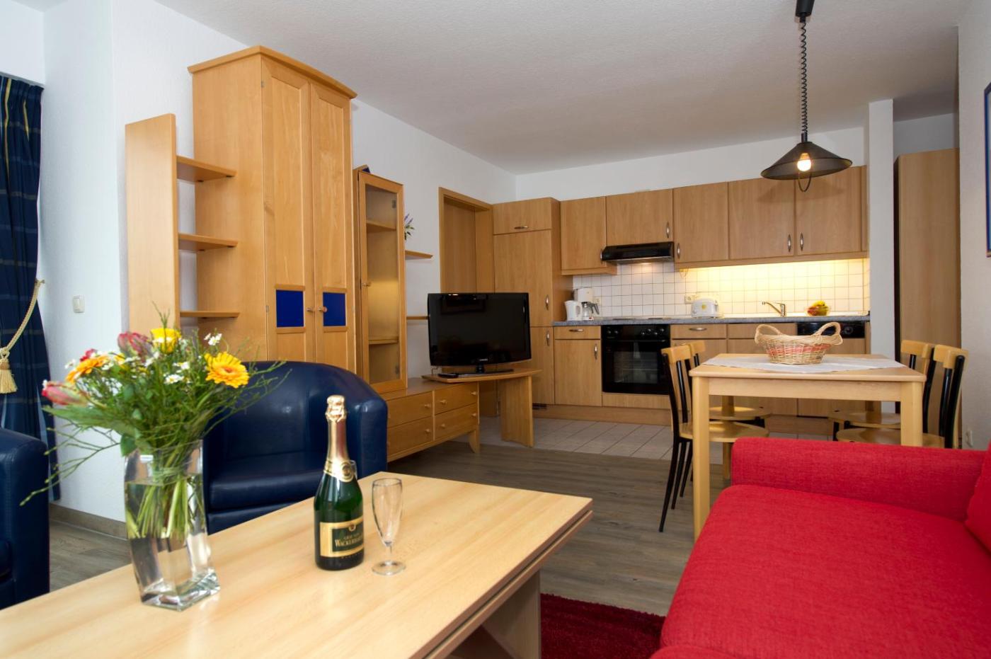 Special Offer - Apartment. This offer includes: - 6 nights accommodation - a welcome drink - a rich breakfast buffet every morning in the hotel - a 3-course dinner in the evening - free use of the spa area with swimming pool, hot tub and 6 different saunas - 1 x large fish buffet on a half-board basis - participation in the beach event on 31 December 2015 - New Years Eve celebration with gala buffet and music - fireworks at midnight from the most beautiful vantage point in Göhren, above the pier and the beach pavilion - drinks such as wine and prosecco served in the festival tentmarquee - a midnight snack at the hotel - New Years day brunch and a festive dinner on 01 January 2016
