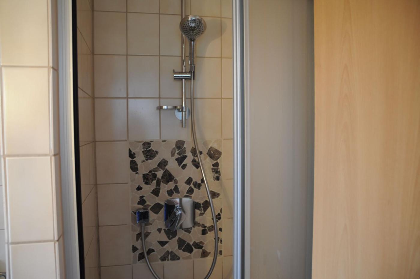 Apartment with Shower. This apartment comes with 1 living room, 1 separate bedroom and 1 bathroom with a shower and a hairdryer. The apartments kitchenette, which has a toaster, is available for cooking and storing food. The apartment features a washing machine, a coffee machine, tumble dryer, a barbecue and a TV with cable channels. The unit has 1 bed. ;