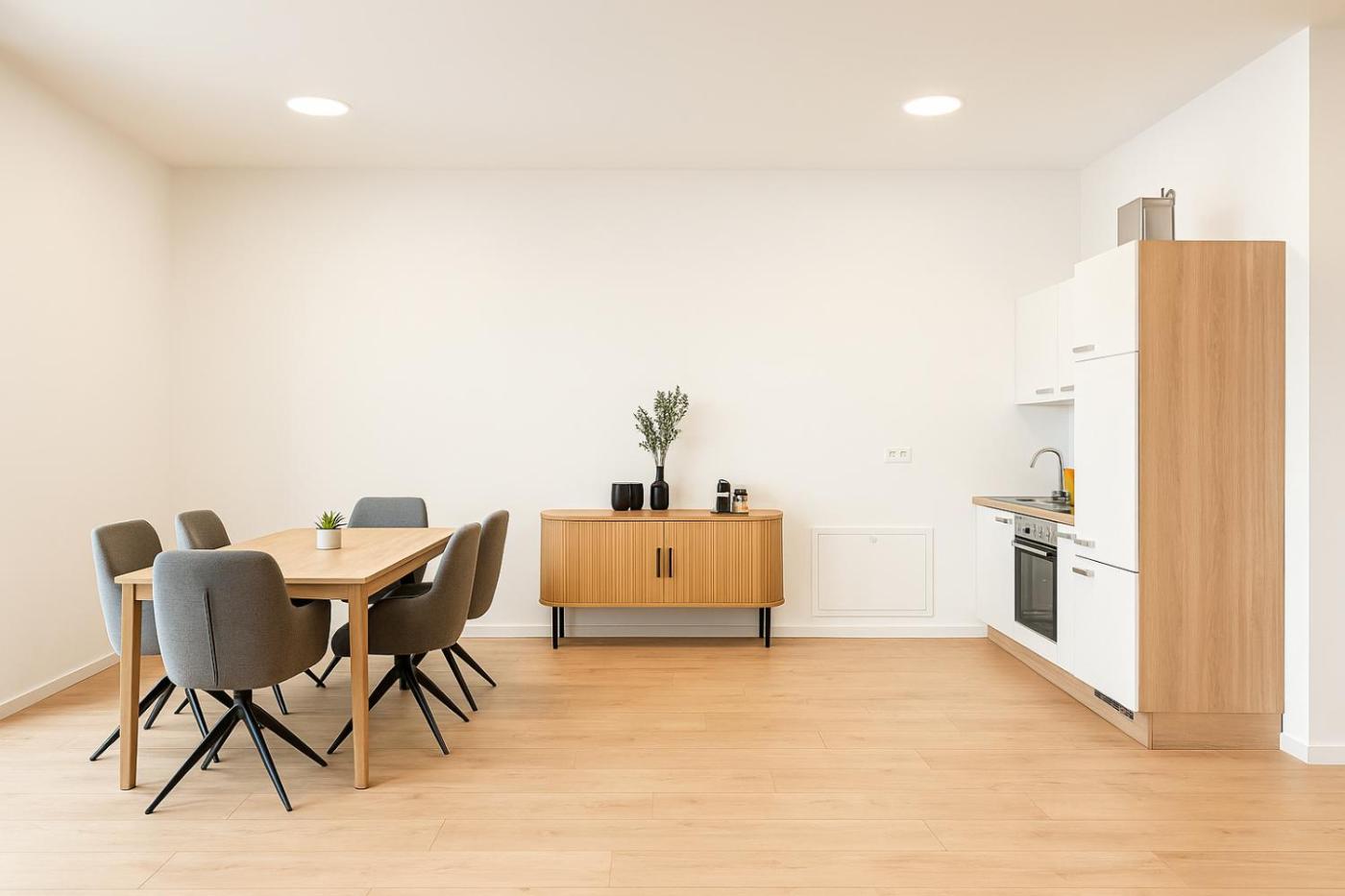 Two-Bedroom Apartment. Boasting a private entrance, this spacious apartment also comes with 1 living room, 2 separate bedrooms and 1 bathroom with a shower. The kitchen features a stovetop, a dishwasher and an oven. The apartment has parquet floors, a seating area with a flat-screen TV with streaming services, a dining area, a wardrobe, as well as an electric kettle. The unit has 5 beds.