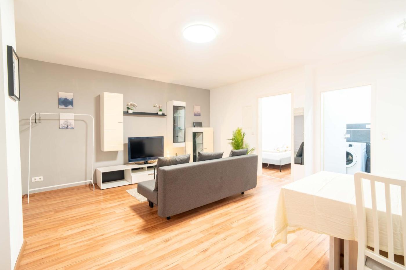 One-Bedroom Apartment. The apartment has 1 bedroom, 1 bathroom and a kitchen. The apartments kitchen is available for cooking and storing food. This apartment features a washing machine, heating and a flat-screen TV. The unit has 2 beds.