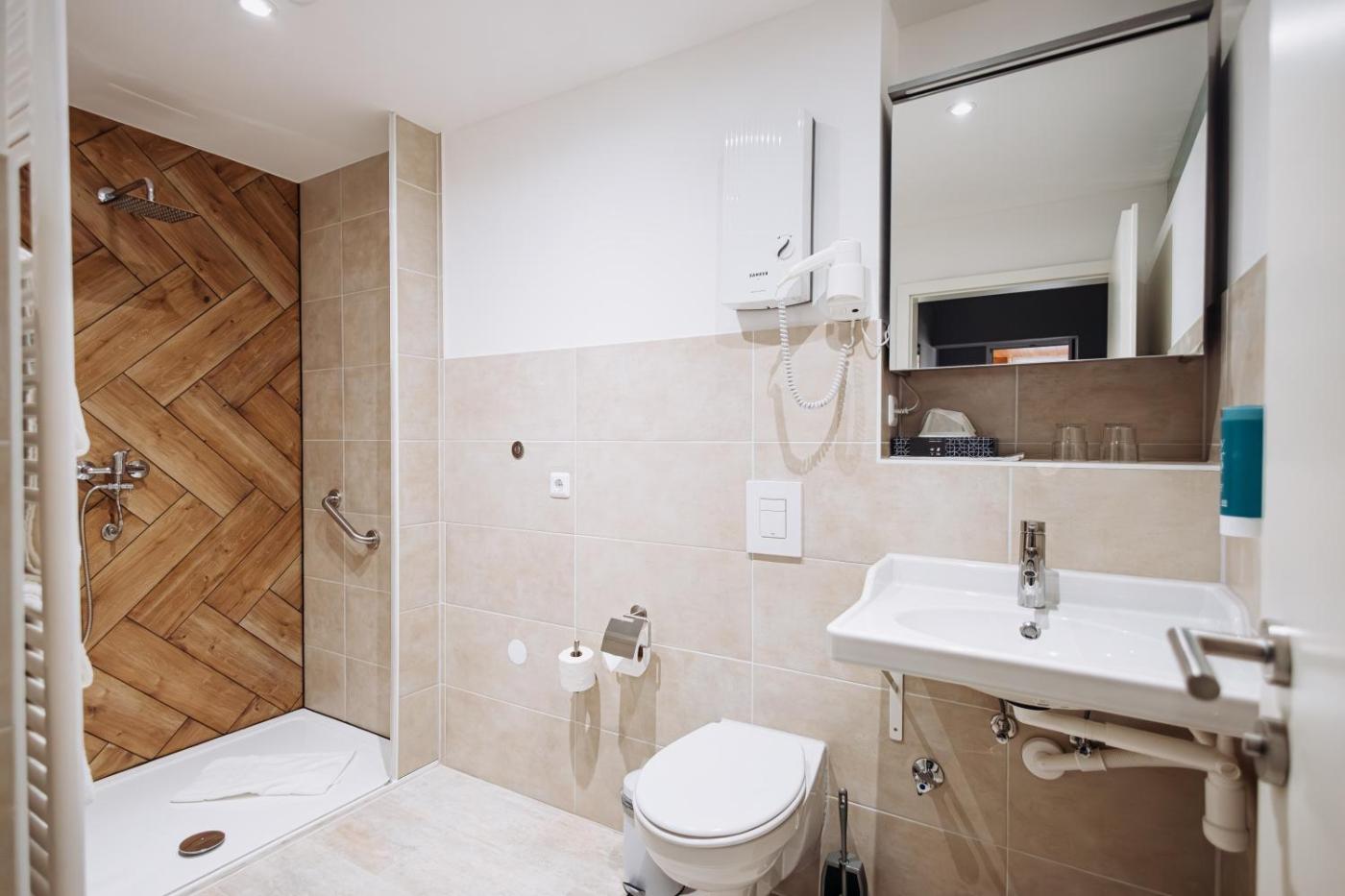 Double Room. The double room offers a carpeted floor, heating, as well as a private bathroom featuring a shower and a hairdryer. The double room provides a wardrobe, a safe deposit box, an electric kettle, a flat-screen TV with cable channels, as well as city views. The unit offers 2 beds. ;