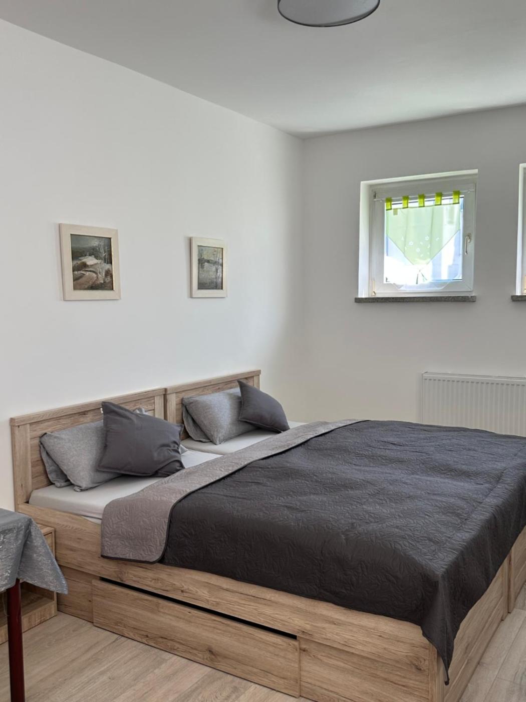 Double Room. The double room includes a private bathroom, well-fitted with a walk-in shower, a bidet, a hairdryer and slippers. Guests can make meals in the kitchenette that has a stovetop, a refrigerator, kitchenware and a microwave. The double room offers soundproof walls, a tea and coffee maker, a wardrobe, heating, as well as a flat-screen TV with satellite channels. The unit has 3 beds.