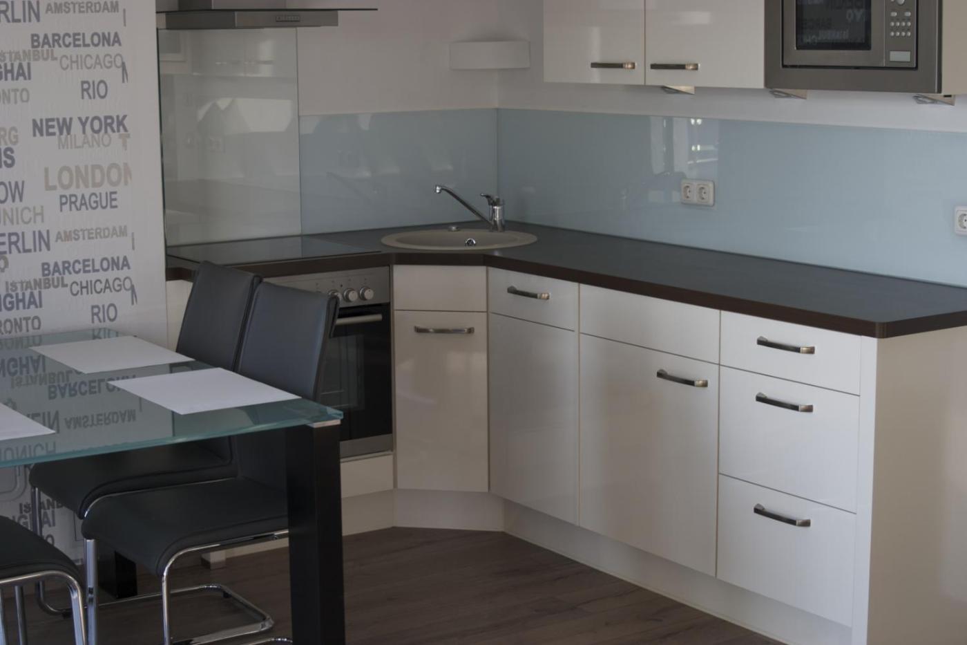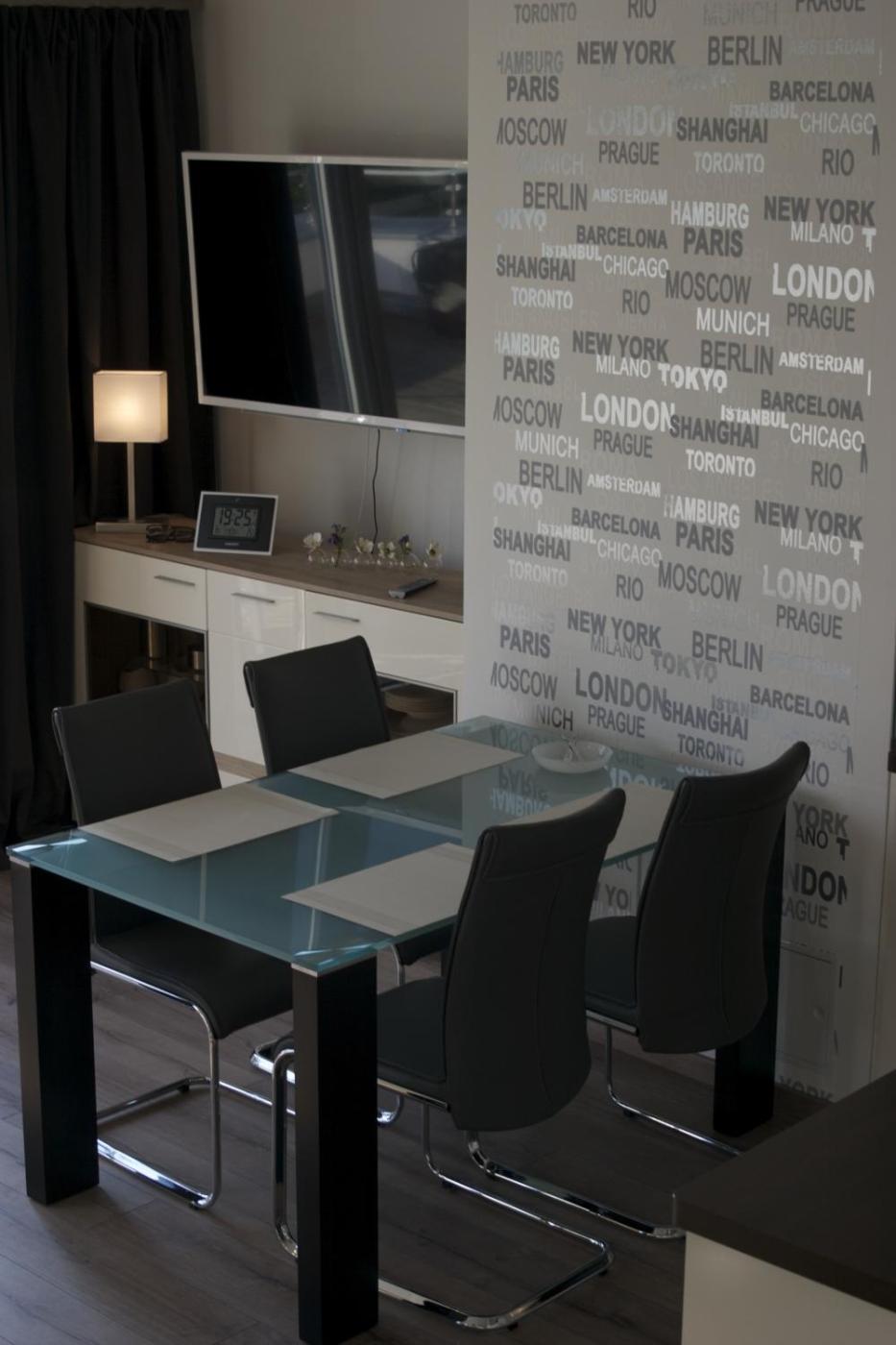 One-Bedroom Apartment. This modern apartment is comfortably furnished and features a fully equipped kitchen and a large terrace with a view of the lake.